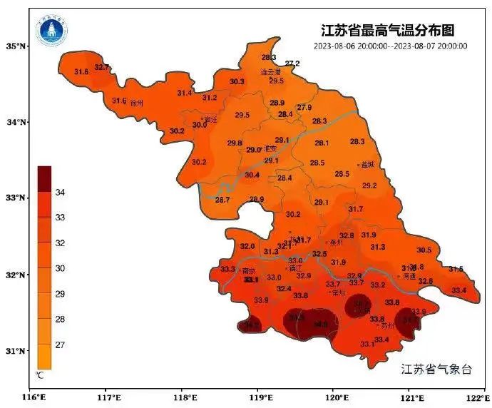 最高气温31℃到34℃